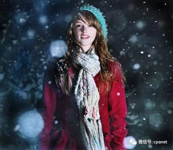 要拍出雪的感覺,不代表就一定得拍大片雪地呀!其實,暗背景更能顯出雪的存在,無論對飄雪還是積雪都是如此。道理很簡單,以一堵白墻為背景,再大的雪你也拍不出來;而穿著黑衣服,落上一點點頭屑,就會非常顯眼。