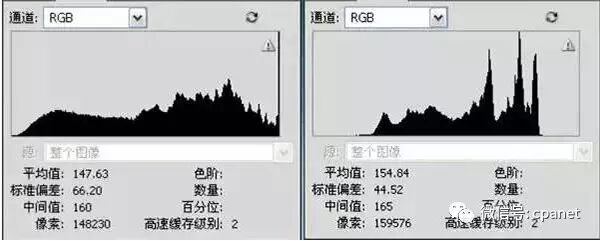 舉個例子吧,以下是兩張照片的直方圖,您覺得哪張照片的曝光更準(zhǔn)確?