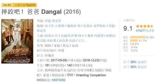 不過,除了阿米爾·汗的電影,整個印度電影在中國的整體表現(xiàn)仍不突出,印度電影的整體水平也并不盡如人意。在10億元票房的《摔跤吧!爸爸》之后緊接著上映的《雄獅》在國內(nèi)票房僅1700多萬。