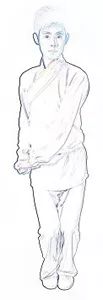 上肢向左運(yùn)動(dòng)時(shí),左手在下,手心向上;上肢向右運(yùn)動(dòng)時(shí),右手在下,手心向上。另外,雙手互挽時(shí),雙膝始終保持并立向前。互挽的路線最好沿著螺旋線運(yùn)動(dòng)。