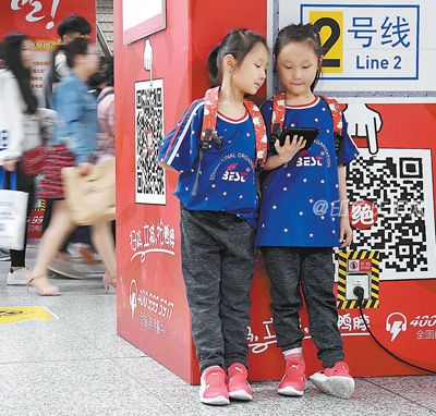 20日,在河南省鄭州市紫荊山地鐵站,一對雙胞胎姐妹在候車間隙閱讀電子書。 (新華社記者 李 安攝)