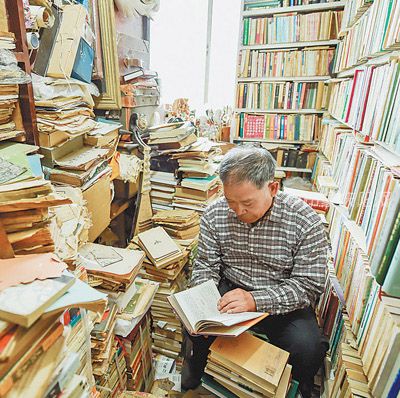 19日,70歲的段存瑞在內(nèi)蒙古呼和浩特文苑舊書店二樓看書,他開這家舊書店已經(jīng)30多年。 (新華社記者 連 振攝)