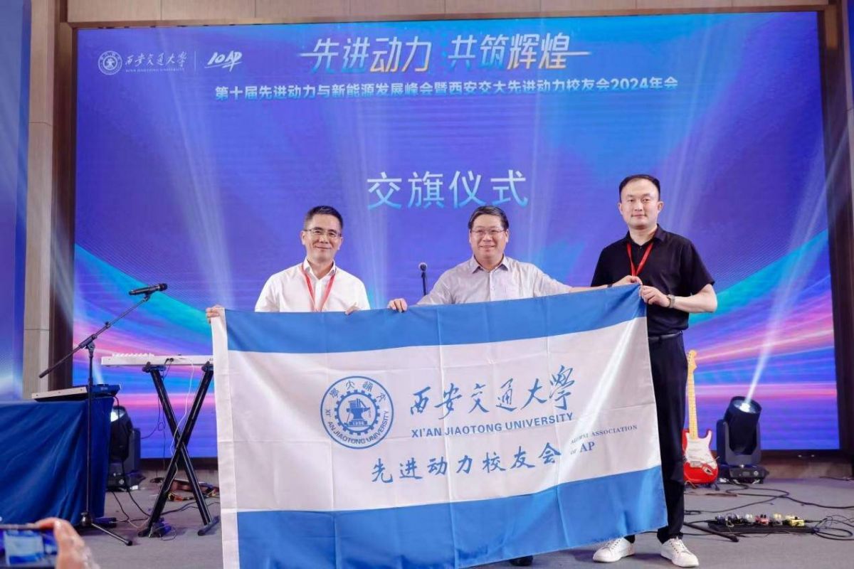 晚宴環(huán)節(jié)還舉行了峰會承辦方交旗儀式,經(jīng)過申請和先進(jìn)動力校友會討論決定,第十一屆先進(jìn)動力與新能源發(fā)展峰會暨西安交大先進(jìn)動力校友會2025年年會將于2025年8月第一個周六在蘇州昆山舉行,由校友企業(yè)昆山市易泰汽車科技有限公司承辦。